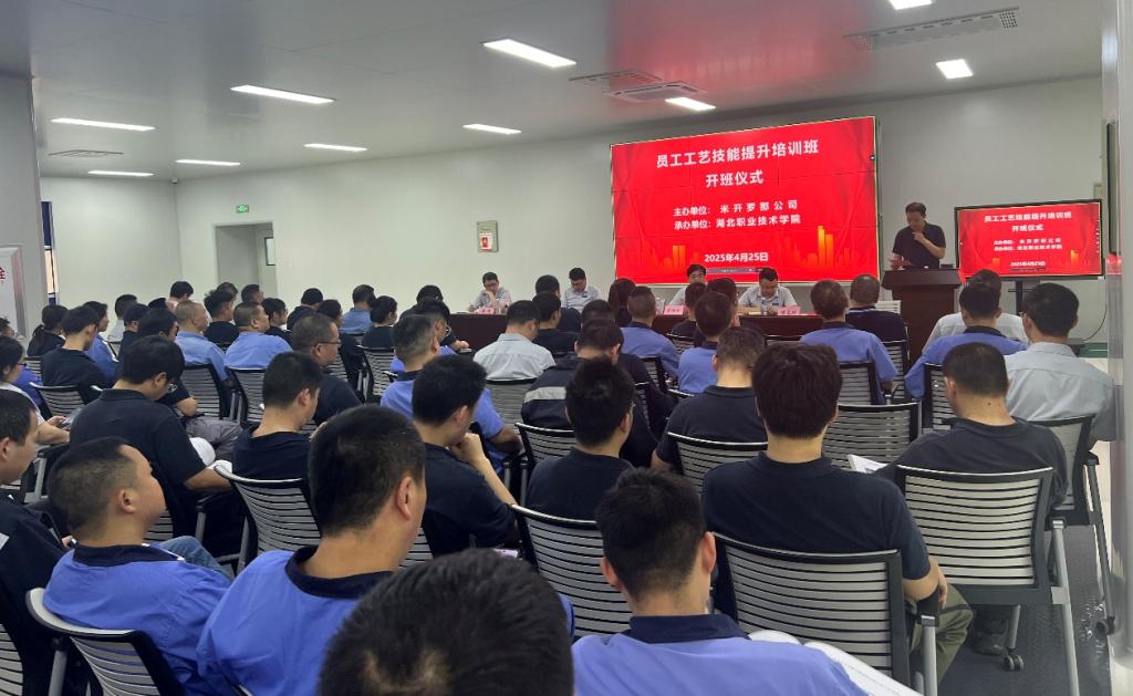 (本网讯 曹艺)4月25日,由米开罗那公司主办,我校承办的“员工工艺岗位技能提升培训班”开班仪式成功举行。米开罗那技术管理部部长李银生,制造部副部长何明康、陈星祥,我校机电工程学院负责同志出席开班仪式,米开罗那公司150名职工参加开班仪式。