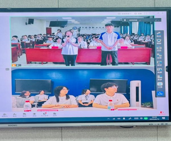 交流互动阶段。两校团员青年通过腾讯云端表演节目,博尔塔拉职业技术学院卫生健康学院带来活力四射的民族舞蹈《白马》和《绽放》,医学院团员青年献上深情合唱节目《如愿》,双方还共同观看了两校宣传片。