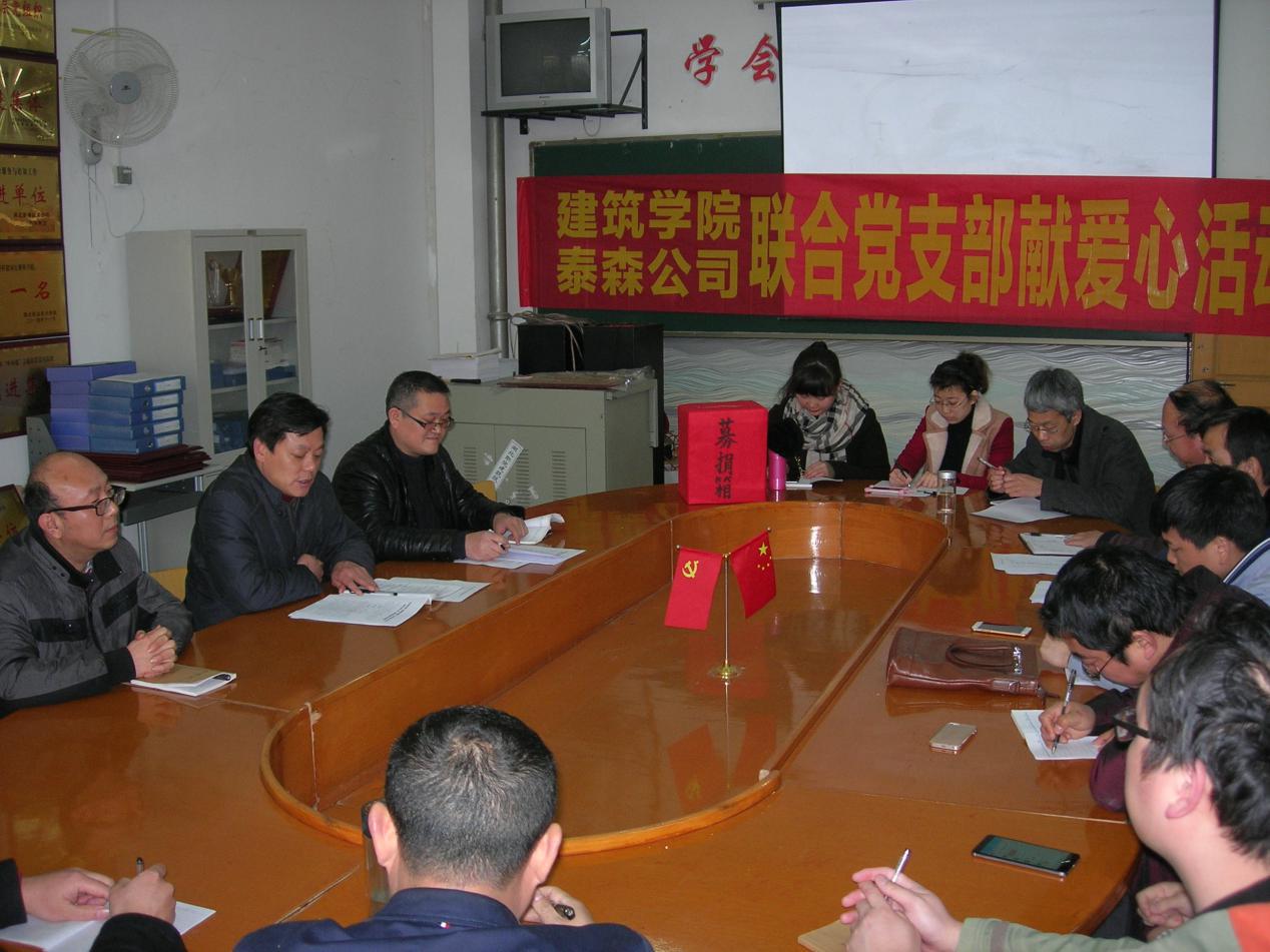 主题活动后,全体党员发扬扶贫济困的传统美德,向建筑技术学院201407201班身患急性肾功能衰竭的汪雪城同学进行了爱心捐款,积极发挥了党组织带头关心群众,爱护学生的模范作用,其他教师和学生代表也慷慨解囊,传递爱心,充分展现了建筑技术学院的凝聚力和温暖。